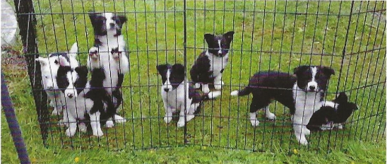 After breakfast, I do some fun training games that are quick and easy for the pup to earn part of his breakfast. This starts to build confidence to learn new things. After he’s had breakfast, I will put him back in his crate for a short 15-30 minutes and then out for a potty break. He then gets to have some supervised time hanging around the house. I then put my pup into an ex-pen that’s close by depend- ing on what we’re doing.